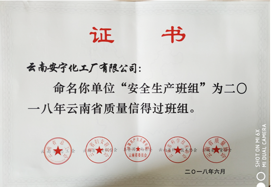 公司榮獲2018年云南省質(zhì)量信得過(guò)班組