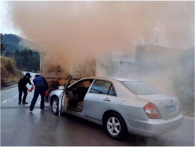 本次演練是模擬公司危貨運(yùn)輸車(chē)裝載成品后由安寧分公司后門(mén)駛出,一輛小轎車(chē)因右轉(zhuǎn)時(shí)車(chē)速過(guò)快,小轎車(chē)車(chē)頭追尾危貨運(yùn)輸車(chē)后貨廂尾部,導(dǎo)致小轎車(chē)車(chē)頭起火。駕駛員及押運(yùn)員在第一時(shí)間迅速向公司報(bào)告并報(bào)警,立即處置初起火災(zāi)。公司接到事故報(bào)告后立即對(duì)事故進(jìn)行分析研判后果斷決定組織應(yīng)急隊(duì)伍到現(xiàn)場(chǎng)開(kāi)展應(yīng)急救援處置。經(jīng)過(guò)現(xiàn)場(chǎng)人員全力有序配合,迅速把初起火災(zāi)撲滅,未造成人員傷亡和過(guò)大的財(cái)產(chǎn)損失。演練過(guò)程按照應(yīng)急演練方案進(jìn)行,組織有力、分工明確、處置得當(dāng),達(dá)到預(yù)期效果。