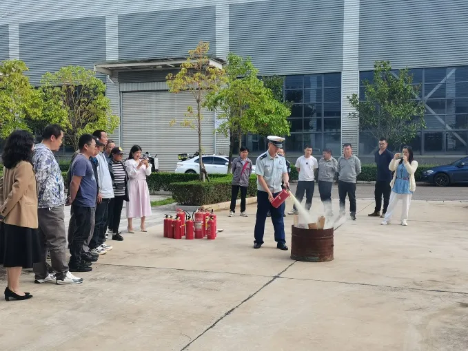 隨后,消防培訓(xùn)師及參訓(xùn)人員一同前往產(chǎn)業(yè)園區(qū),培訓(xùn)師就如何正確操作廠房內(nèi)外配置的消防設(shè)施親自示范教學(xué),之后員工輪流使用滅火器進(jìn)行滅火演練,確保在火災(zāi)發(fā)生時(shí)能夠迅速、有效地進(jìn)行滅火。