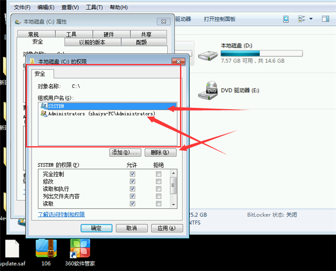 3、將彈出來的選擇夾內(nèi)的所有除自己的用戶、“System”、“Administrator”外的所用用戶全部刪除,刪除尤其是user和everyone用戶名(黑客最常用戶名)必須刪除;