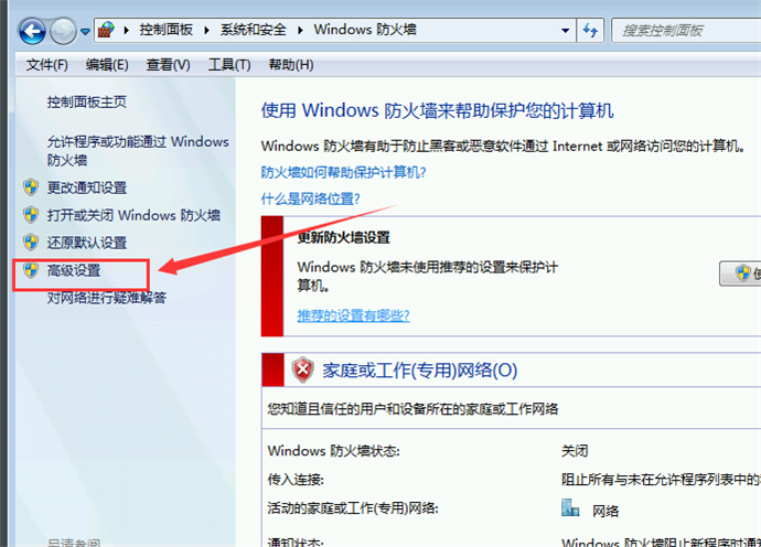 4、單擊左邊菜單欄內(nèi)的“高級設(shè)置”;